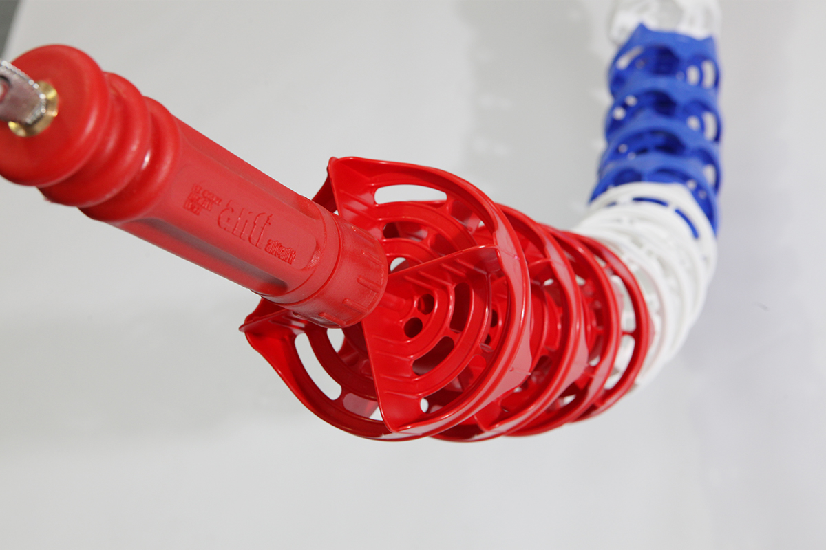 Individual lane discs are assembled along SS316 cable along with the Anti Wave donut float for floatation.